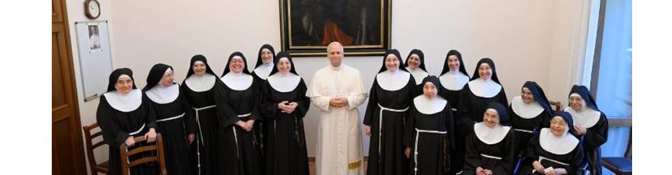 celebra con la Comunità i vespri e sottolineando nell’omelia come «Il fondo della realtà è proprio l’amore, che è la verità, e la verità è l’amore: è più forte di tutti i “pensieri” del mondo. Così possiamo lasciarci cadere in questo abisso dell’amore di Dio, con il Dio che è più forte di ogni male». Successivamente incontra le Sorelle nella sala comunitaria. Incontralo ha significato comprendere come nel Vangelo “grandezza” e “piccolezza” vadano insieme ridestando in noi il sapore di un’esperienza viva di Dio. Ribadendo il grande valore della nostra vocazione ci ha detto: «È un servizio per la Chiesa universale, per tutta la Chiesa: stare insieme al Signore, per il Signore, e così tenere viva la presenza della contemplazione, la fede in Dio, con la centralità di Dio. È molto importante che ci siano persone che annunciano che “essenziale” è Dio. E poi testimoniare questa unione col Signore».